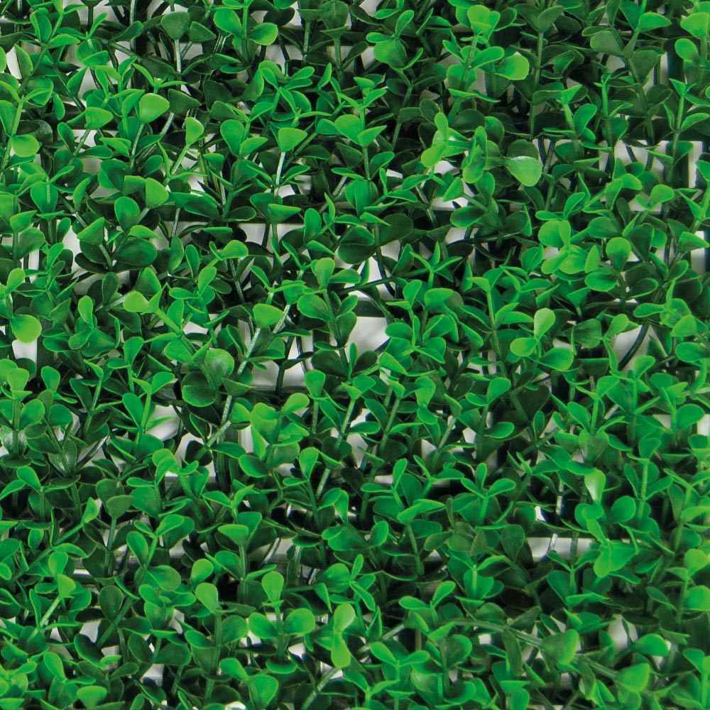 Seto artificial con hojas de boj de color verde intenso en módulos componibles