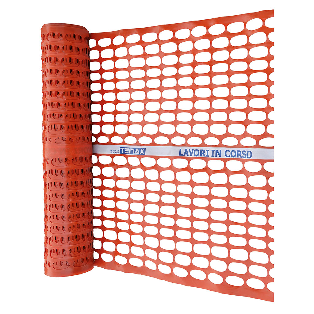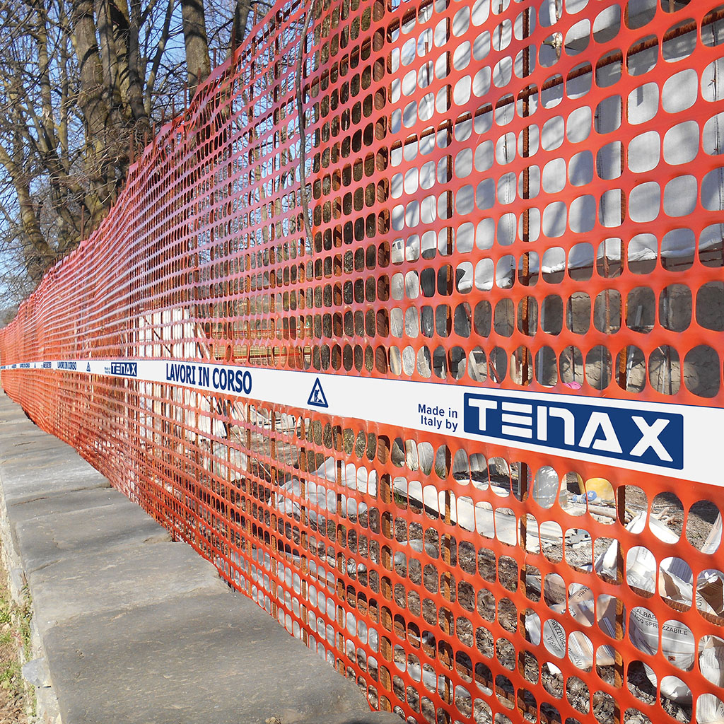Rete da cantiere estrusa in HDPE a maglia ovoidale dotata di bordi e fascia centrale antistrappo. Ad alta visibilità, trattata per resistere ai raggi UV mantiene inalterate le sue caratteristiche nel tempo. Dotata di nastro centrale con la scritta “Lavori in corso” e logo TENAX.
