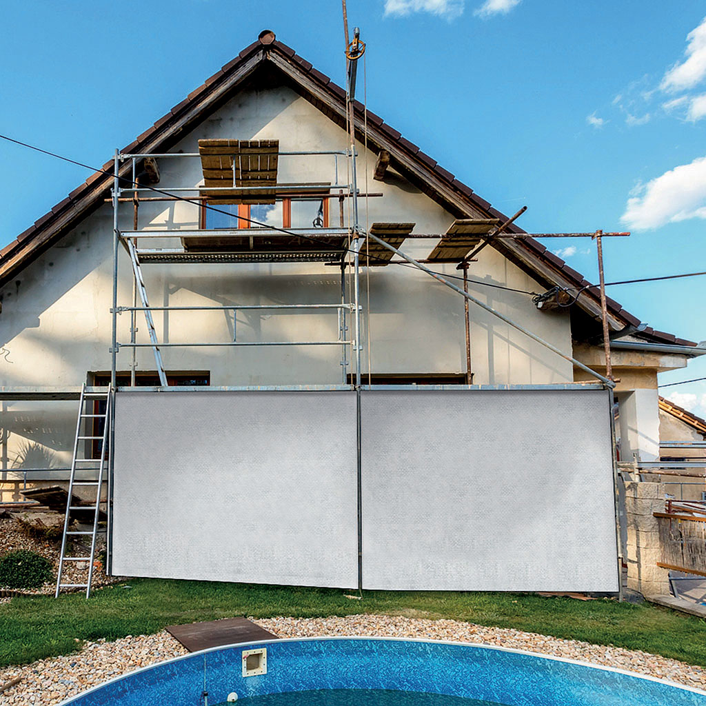 Stuoia antipolvere bianca in polietilene (PE) per schermatura ponteggi, dotata di occhielli in alluminio sulle cimose, per facilitare il fissaggio e la posa in opera. Schermante al 100%, evita la fuoriuscita di polvere e garantisce una copertura totale. Risulta particolarmente indicata alla base del ponteggio per le applicazioni in zone ad elevato passaggio pedonale.