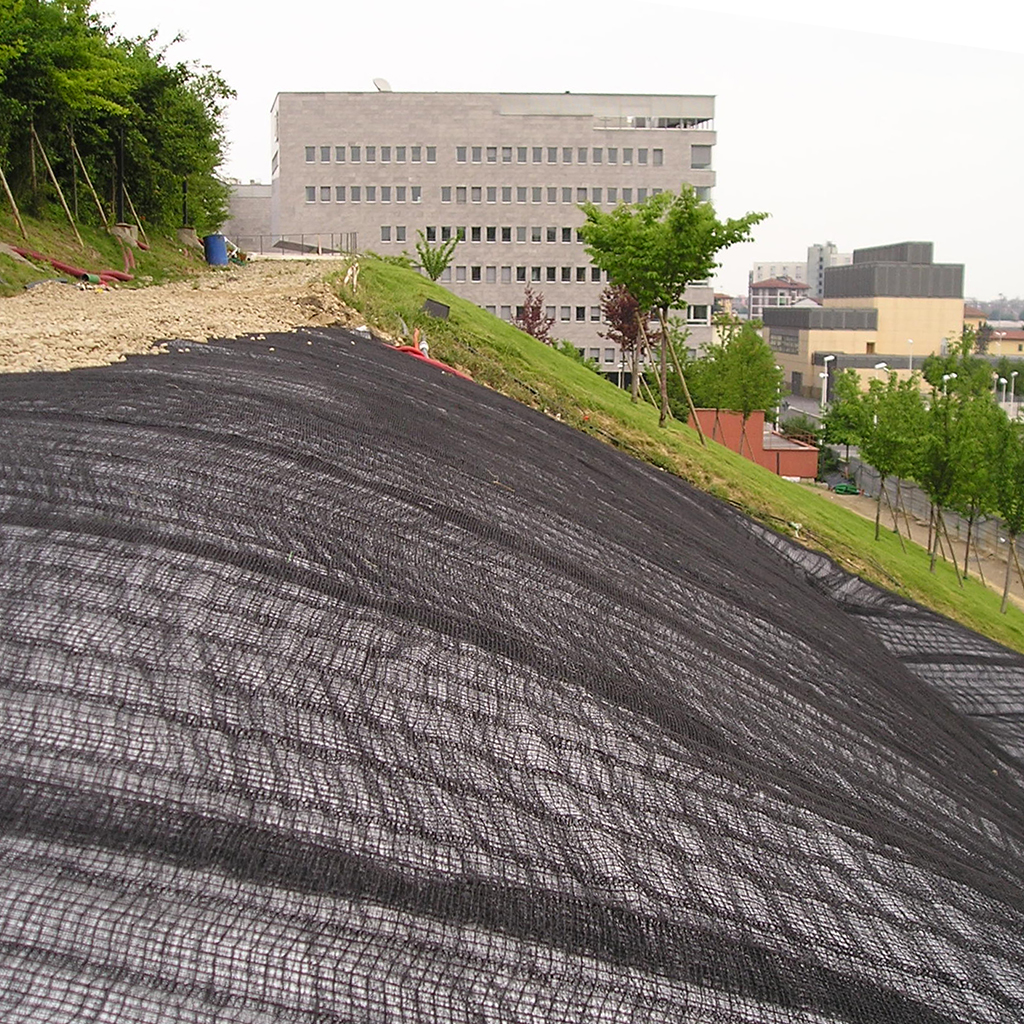 La geostuoia tridimensionale rinforzata Multimat R trova impiego per la protezione dall’erosione delle scarpate molto lunghe, molto inclinate o nel capping delle discariche come aggrappante tra il terreno di coltivo ed il drenante inferiore.