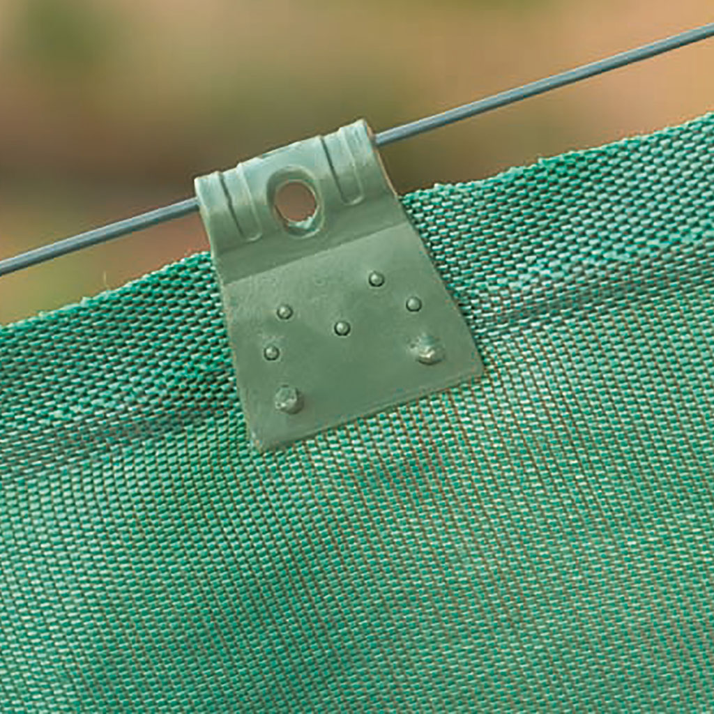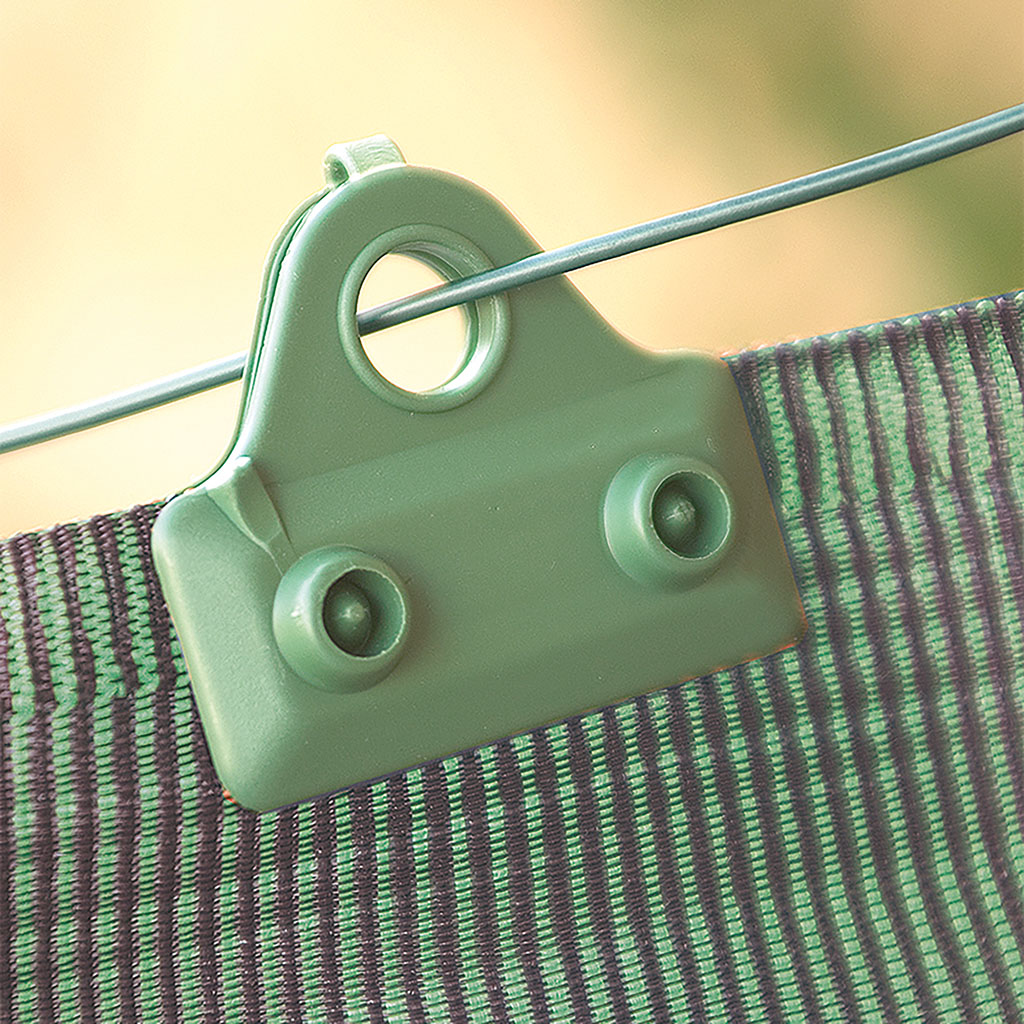 Le TENAX CLIPS 35 e 50 sono utilizzate per il fissaggio di reti tessute frangivista, ombreggianti e schermanti. Sono semplici da usare: si chiudono con una semplice pressione e mantengono la rete salda e tesa al filo di fissaggio.