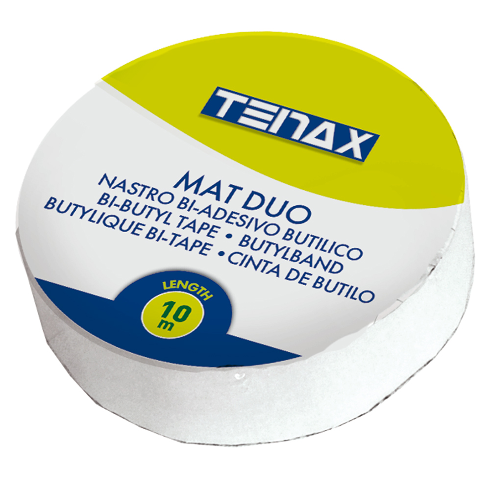 Il nastro biadesivo butilico MAT DUO è rinforzato da una rete in poliestere per la massima efficacia e praticità. Ha uno spessore di 2 mm.