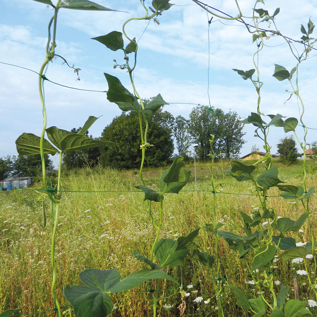 Rete per piante rampicanti ad ampia maglia sottile, di colore verde. Nell’orto, applicata fra più pali di legno, facilita la crescita ordinata e rigogliosa di pomodori, fagiolini e ogni altro tipo di rampicanti. È un sistema pratico, veloce ed economico per sostenere lo sviluppo verticale degli ortaggi e facilitarne la successiva raccolta.
