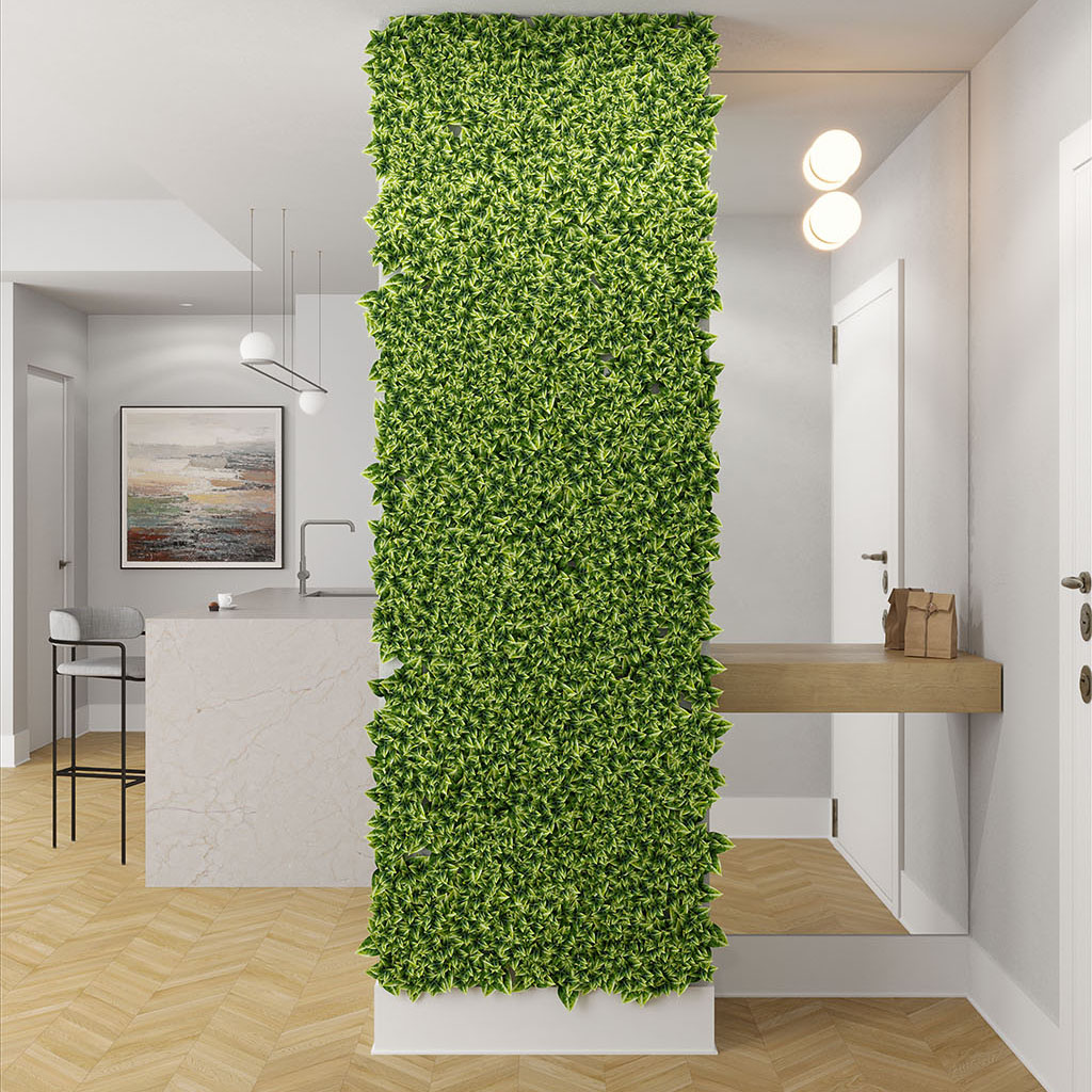 Il pannello di siepe artificiale è morbido e flessibile, può essere posizionato anche su pareti curve o su colonne. La siepe artificiale TENAX DIVY PANEL POTHOS è trattata per resistere ai raggi UV, è indicata per interni ed esterni e mantiene le caratteristiche nel tempo senza scolorire. Il pannello è pre-assemblato ma può essere scomposto e riassemblato in altri formati. Modulare e flessibile, permette di comporre composizioni a piacere.