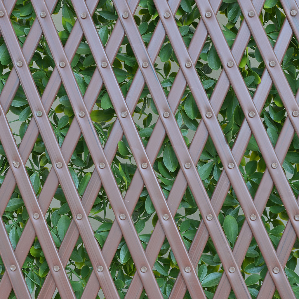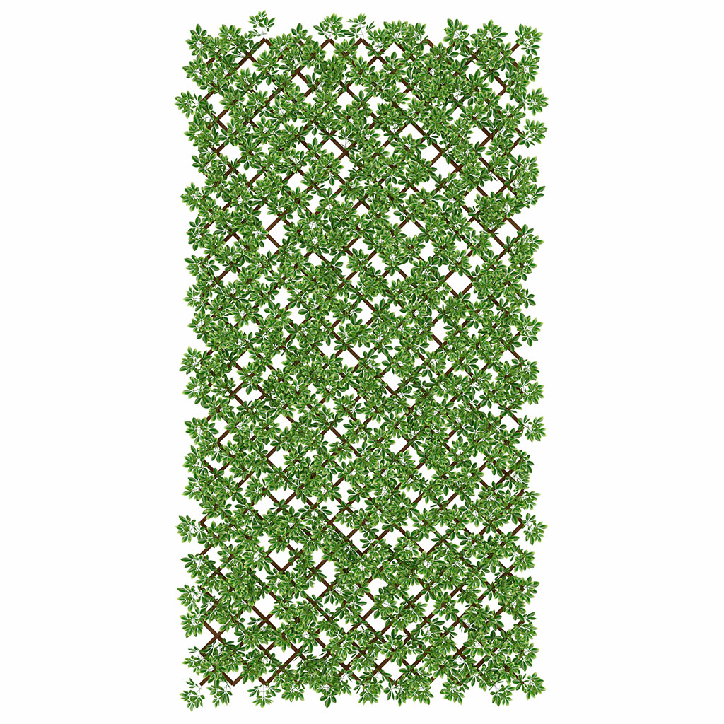 Siepe sintetica composta da un traliccio estensibile in plastica (PVC) con foglie in polietilene. Il traliccio di supporto è estensibile e può adattarsi facilmente a spazi diversi. Si apre alla misura desiderata e si installa facilmente. Ideale per decorare muri e pareti, per creare divisori su balconi e terrazze, per occultare oggetti e per schermare giardini o recinzioni. La siepe artificiale è trattata per resistere ai raggi solari, non si scolorisce e mantiene le proprie caratteristiche nel tempo. Può essere posizionato in verticale su muri e pareti o in orizzontale su ringhiere e recinzioni.
