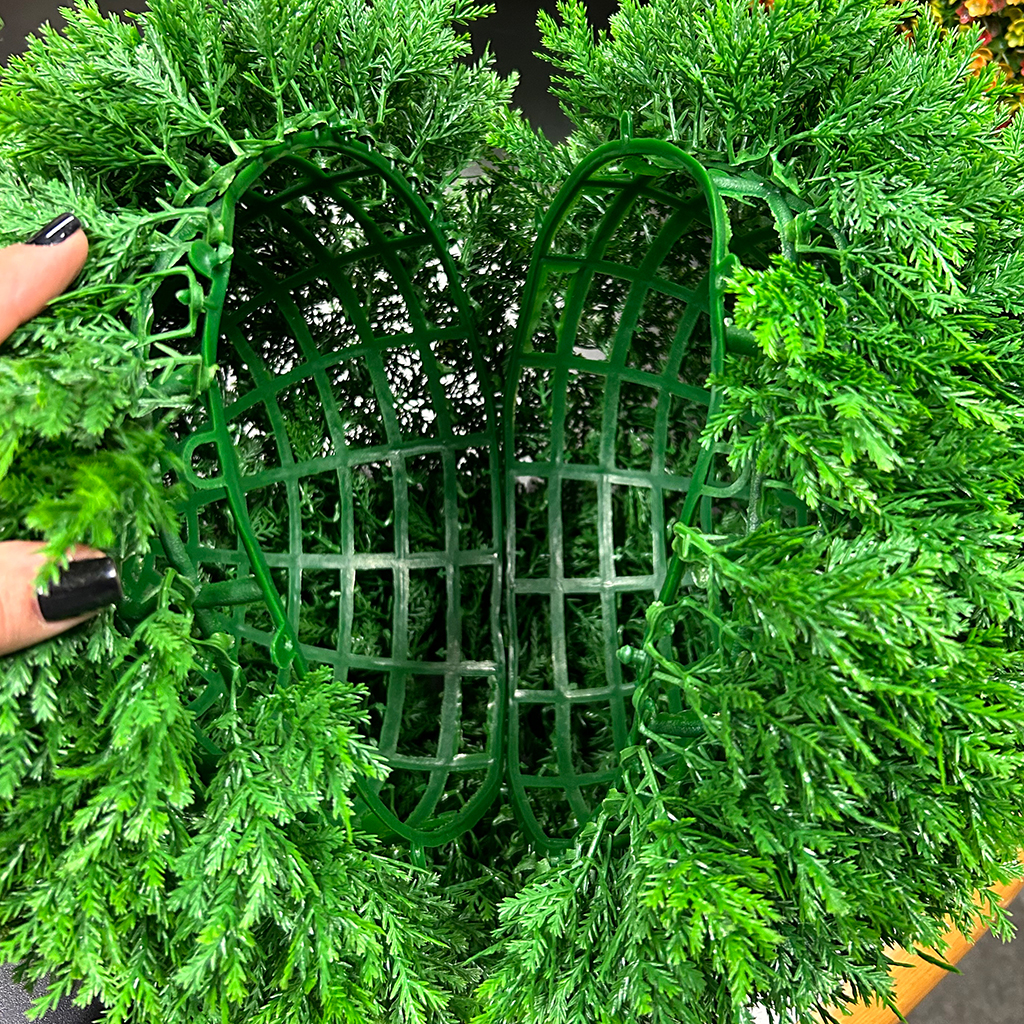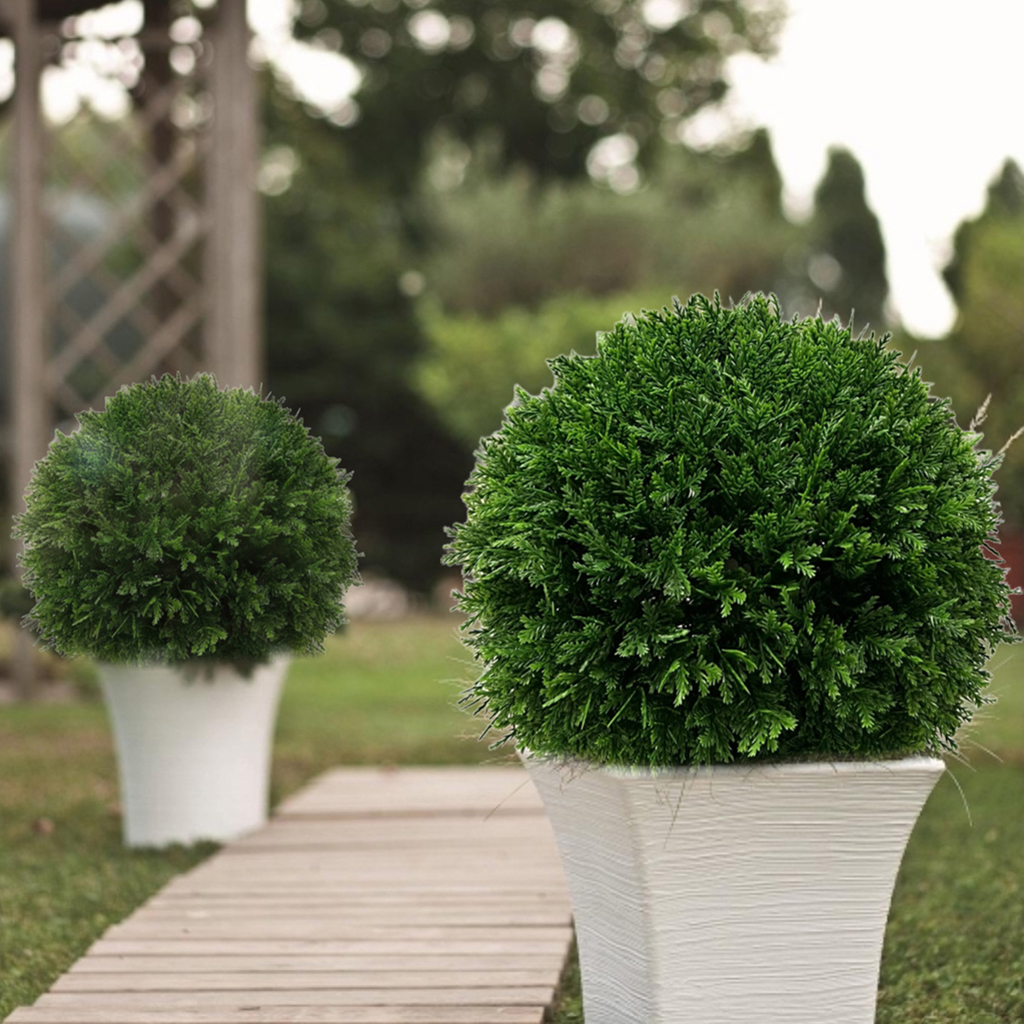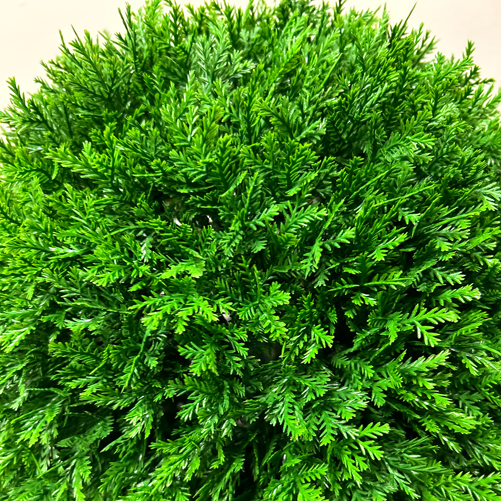 Sfera decorativa artificiale ispirata alle foglie del Cipresso Lyeland, realizzata in polietilene con foglie realistiche disposte in modo variegato per un effetto naturale. Ideale per decorare la casa, può essere utilizzata come centrotavola, appesa o posizionata su supporti e vasi. La struttura interna è una rete di plastica verde che garantisce stabilità e flessibilità. Trattata per resistere ai raggi UV, è perfetta sia per interni che per esterni, mantenendo intatti i colori e le caratteristiche nel tempo. Disponibile in diversi diametri per soddisfare ogni esigenza decorativa, si distingue per l’effetto realistico delle foglie che dona un tocco di eleganza a qualsiasi ambiente.