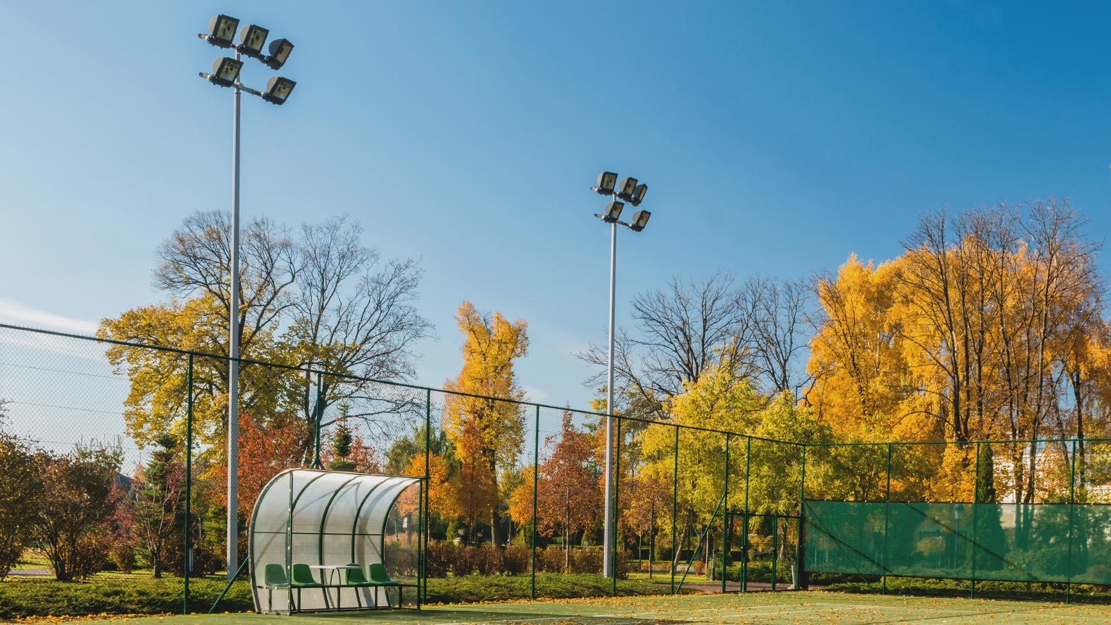 TENAX CINTOFLEX D, dotata di maglia ampia (22 x 35 mm), è ideale per la recinzione di aree dove è necessario garantire luminosità degli ambienti come nel caso degli impianti sportivi.
